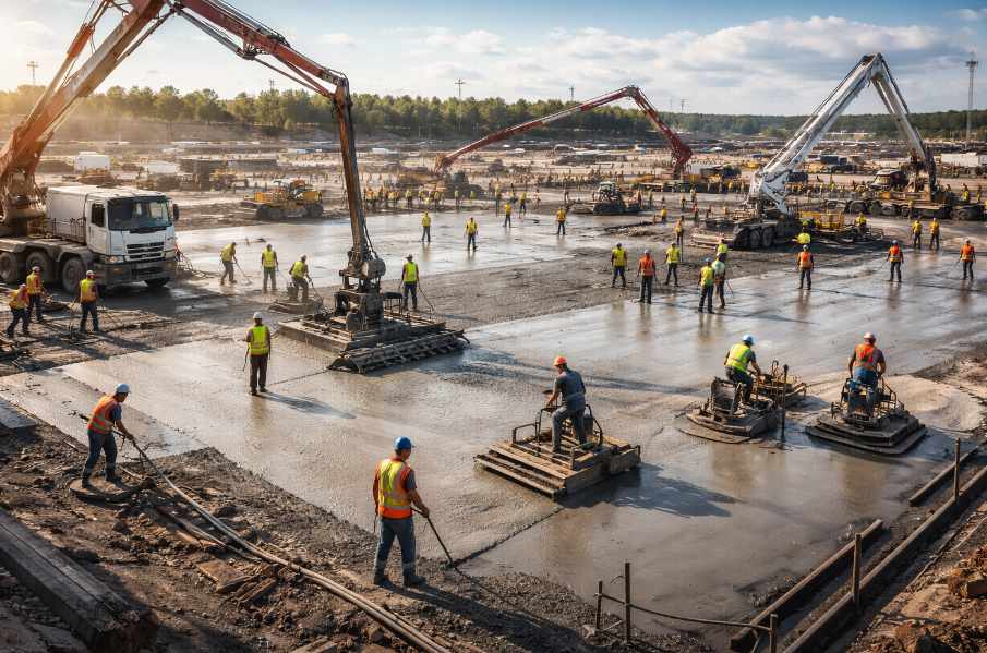 Logistics Before the First Truck Arrives Large commercial concrete projects rarely begin with concrete. They begin with spreadsheets, scheduling calls, equipment checks, and a calendar that looks like it was attacked with a highlighter. Warehouses, parking areas, and multifamily developments depend on enormous flatwork pours, and those pours operate on a timeline that leaves very […]